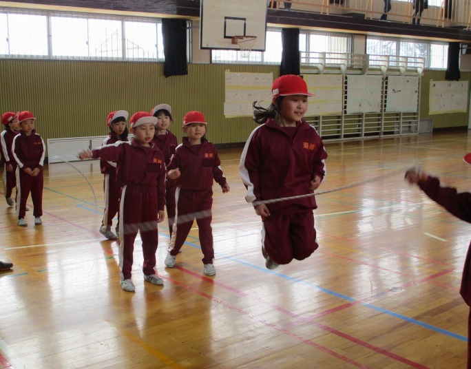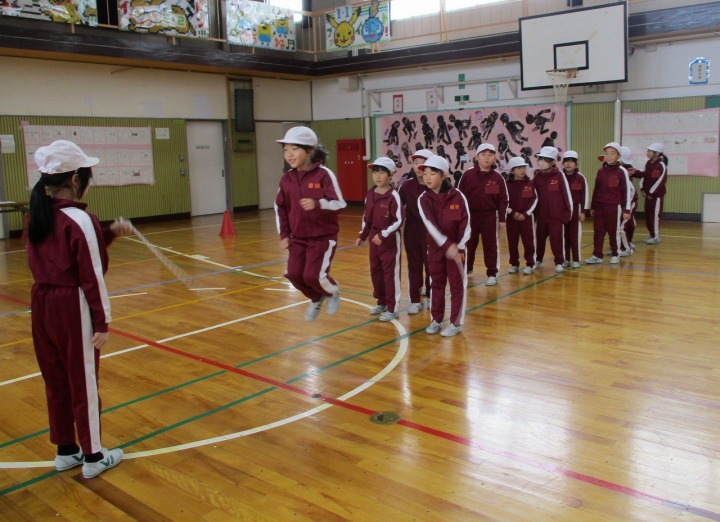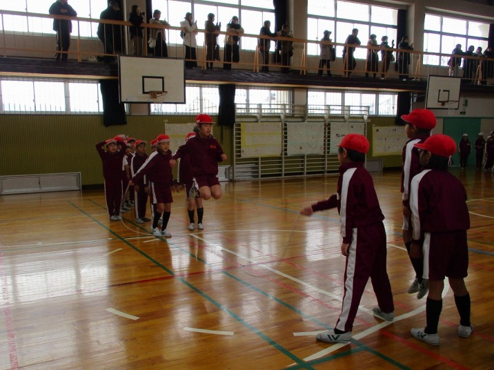 | 1月28日(水) 1,3,4年生なわとび大会。 今日は、1,3,4年生のなわとび大会がありました。1年生にとっては初めてのなわとび大会。たくさんの保護者の方々に応援していただきながら、これまでの練習の成果を発揮しようと張り切っていました。今回新記録が出た子、くやしい思いをした子、それぞれの思いの詰まったなわとび大会になりました。2日間にわたり全学年のなわとび大会を体育の授業として行いました。積雪がある中にもかかわらず、たくさんの保護者の方々のご参観、心より感謝申し上げます。ありがとうございました。 |