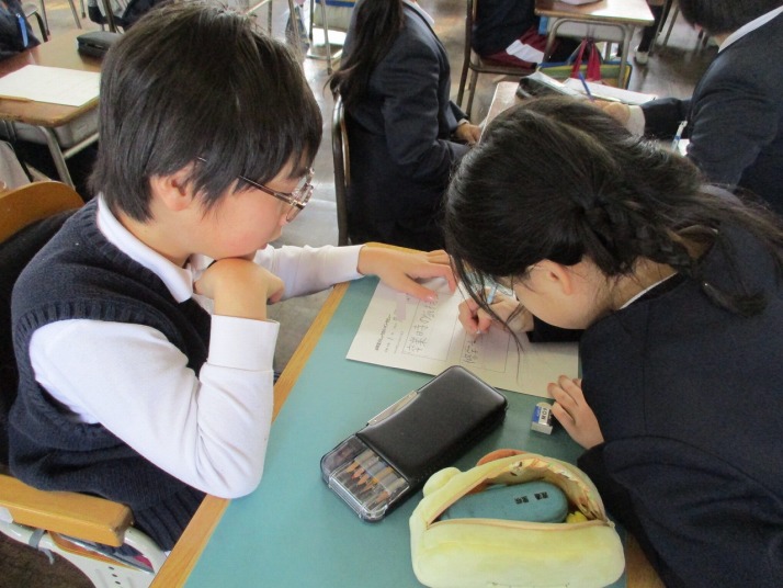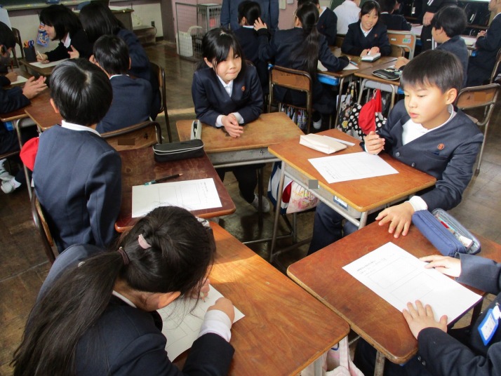 | 1月21日(水) 権利と義務について。 6年生の道徳では、「ピアノの音が・・・」という教材を使って「自他の権利を尊重すること」について考えました。マンションで起きた騒音トラブルです。「隣の女性の弾くピアノがうるさい、我慢できない、静かに過ごす権利があるから裁判を起こす」という男性から訴えがありマンションの管理組合の方がトラブル解決について悩むという内容です。3人一組でそれぞれの役割になり、対話をする中で、自分の権利ばかりでなく相手の権利も考えることも大切だと気づいたようでした。上手に仲裁し解決に至ったチームもありました。今後、この学習をぜひ生かしてほしいものです。 |