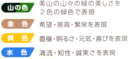 デザインの基本形には6つの辺と頂点を持つ六角形を用い、山の形は MIYAMA の頭文字「M」から形づくられています。美山が誇る米づくりや林業、そして特産の「美山杉」にちなんで、稲穂と杉の葉で「美山」の文字を囲み、その下には美山を潤す足羽川などの清らかな清流を表現するため、水の波紋をイメージしたアーチ状の二本線をあしらいました。自然豊かな山々に囲まれた美山の大地で学び、子どもたちがのびのびと、たくましく成長してほしいという願いが込められています。