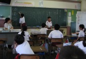 | 9月1日(月) みんなで楽しめる行事を考えよう 今年度は、熱中症対策のため、これまで秋に開催してきた校内体育大会を春の地区体育祭と同日開催としたため、秋休み前の行事が一つなくなった形となりました。その分、みんなで楽しめるような行事をしようと昨年度から今の6年生と約束していました。今日は、委員会活動の前に5,6年生がプレールームに集合し、校長先生からその経緯と今後について説明を聞きました。予定は、10月3日にミニ体育大会(仮称)。どんな行事になるのかな。今からみんなで知恵を絞って楽しい行事を考えていきたいと思います。 |