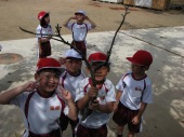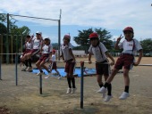 | 9月25日(木) 東郷っ子なかよしフェス 練習をしたよ! 大休みのなかよしタイムには、東郷っ子なかよしフェスの練習をしました。あらかじめ、体育委員会制作の動画を視聴しておいたので、みんなで作戦を立てルールを確認しながら練習することができました。 |