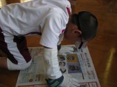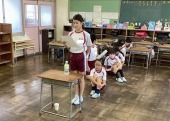 | 9月19日(金) 東郷っ子なかよしフェスにむけて! なかよしフェスの種目が決まり、今日は6年生が、来週行われる練習会に向けて、実際に種目にチャレンジしたり役割を決めたりしました。来週には、全校放送で、種目をお知らせするそうです。 |