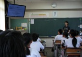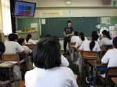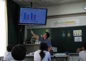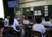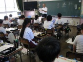 | 9月10日(水) 東郷の魅力は? 3年生の総合的な学習の時間には東郷地区のことを様々な視点から探究しています。今日は、東郷公民館長様をお迎えして、東郷地区の歴史や魅力などについてお話をお伺いしました。館長さんは、3年生のために資料を作ってくださり、わかりやすくお話ししてくださいました。ありがとうございました。次回は、東郷地区ふるさとおこし協議会の会長様にお話を伺います。 |