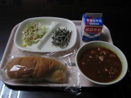 | 8月27日(水) 今日の給食。打ち豆入りカレーシチュー。 今日の給食の献立・・・ご飯、打ち豆入りカレーシチュー、キャベツの塩麹炒め、味付け煮干し、牛乳。エネルギー 608kcal タンパク質 20.3g |