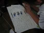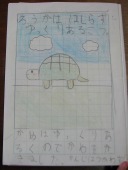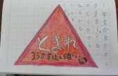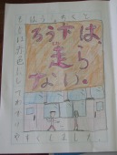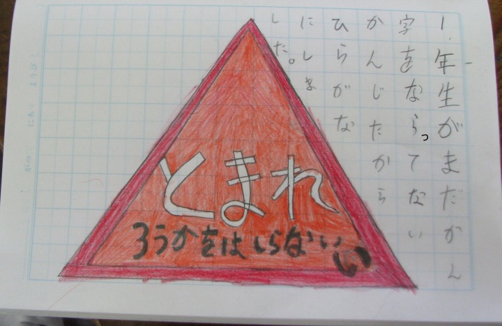 | 9月11日(木) 看板を考えました 2年の国語「みの回りのものを読もう」の単元で「みの回りには言葉や絵などの使い方を工夫して情報をつたえるものがある」ことを学び、何を伝えようとしているのか考えました。そして、自分たちでもみんなに伝えたいことを看板として絵や短い文で表すことにしました。今日はその発表会。みんな工夫して看板づくりができました。 |