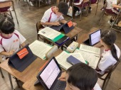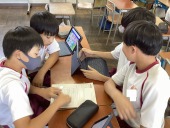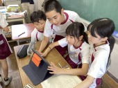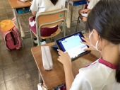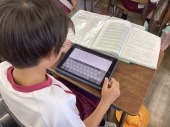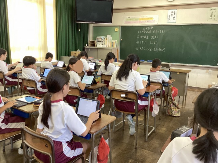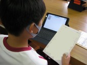 | 9月30日(火) 総合的な学習 3,5,6年生 6時間目は、総合的な学習の時間に調べ学習を進めているようで、3年生は東郷地区のことを、5年生は今度訪れる東郷地区の企業について、6年生は修学旅行について、調べていました。どの学年もタブレットを上手に活用していました。 |