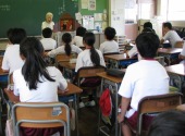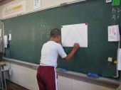 | 9月3日(水) 名称決定!「東郷っ子なかよしフェス」 10月3日に行う児童主体の行事は、体育委員会で検討し名称が「東郷っ子なかよしフェス」に決まりました。今日のお昼の放送でその紹介がありました。また、各学級では、どんな種目がいいか学級会を開いて案を出し合っていました。いろいろなアイディアがで絵、みんなで楽しめる種目ができあがるといいですね。 |