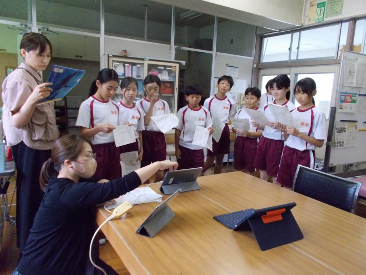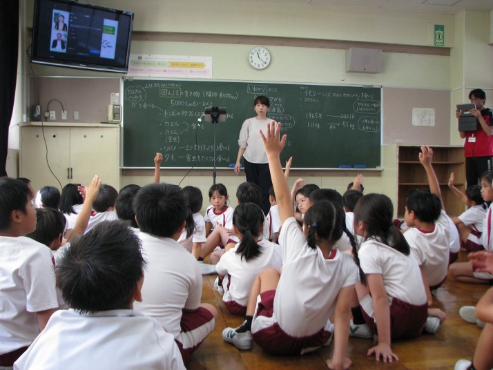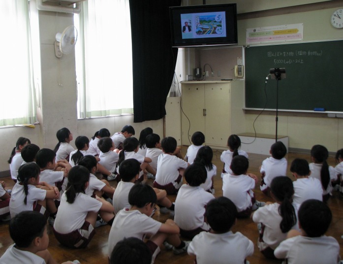 | 9月17日(水) 田んぼの生き物調査オンライン授業 田んぼの生き物について学ぶオンライン講座を3年生が受講しました。理科の授業でも昆虫などの生き物の食べ物やすみかについて学習したこと、先日も稲刈りをするなど田んぼに関わったことなどから受講することになったようです。講座の中では、生き物についてのクイズがあったり他校の児童が調査している動画を見るなどして学びを深めました。 最後に「田んぼはイネだけでなく生き物が住む場所」「農家の田んぼづくりが生き物を育てている」「私たちがお米を食べることで田んぼの生き物を育んでいる」とのまとめがありました。 |