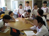 | 9月18日(木) 健康委員会発表に向けて いよいよ明日は、健康委員会の発表の日です。今朝は、保健室に全員が集まってリハーサルを行いました。プレゼン資料も自分たちで作成し毎日頑張ってきました。明日は頑張ってください。 |
