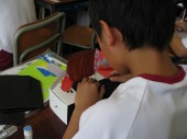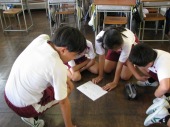 | 9月11日(木) 健康委員会 委員会発表準備頑張っています 健康委員会は次回の委員会発表で、実験を行いその結果についてまとめたものを発表しようと休み時間ごとに保健室に集合しまとめています。どんな発表になるのかな。 |