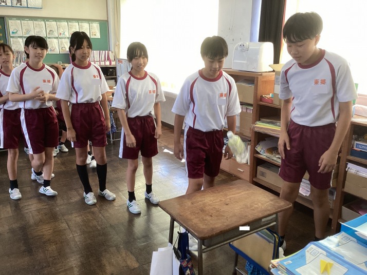 | 9月24日(水) 東郷っ子なかよしフェス 種目決定! 今10月3日に行われる「東郷っ子なかよしフェス」の種目が決定し、今朝全校放送で、みんなで考えたお礼と種目の発表がありました。種目は「ペットボトルフリップ」「おつくね描き対決」「紙コップ積み」です。明日はなかよし班で練習会が行われます。みんなで楽しみましょう。 |