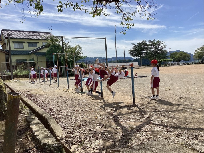 | 9月3日(水) 久しぶりに校庭で遊べたよ 今日は、気温は高かったものの、雲が出て涼しい風が吹いていたため、久しぶりに校庭で遊ぶことができました。「お!校庭いけるやん!」「やったー!」とたくさんの東郷っ子が校庭に走り出ていきました。鉄棒や鬼ごっこなど久しぶりの外遊びを体いっぱいで楽しんでいました。お昼の放送では、今日の放送当番さんが朝日小学生新聞の記事「今年の夏は最も暑かった」を読んで、「早く涼しくなるといいなと思いました」と感想を述べていました。 |