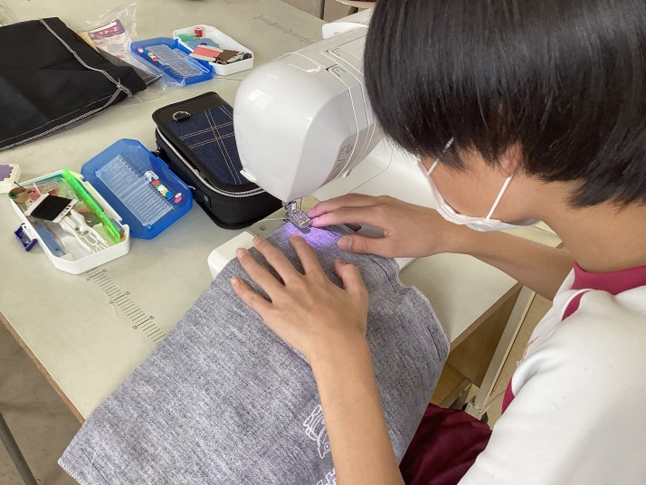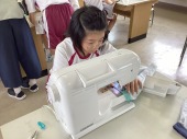 | 9月24日(水) トートバックを作ろう 6年生の家庭科では、トートバックを作っています。使うのはミシン。布に丁寧にしつけ縫いをしたら、ミシンをかけていきます。みんなとても丁寧にそしてミシンも上手に使っていました。 |