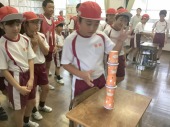 | 9月30日(火) 4年生 空気でっぽう ポンポンぽん! 4年生の理科の授業では、「ものの性質」を学んでいきます。まずはとじ込めた空気の性質を学ぶために空気でっぽうを使っていきます。今日はプレールームで空気でっぽうで玉を飛ばしてみました。あまり飛ばなかったり、遠くへ飛んだり・・・どうしてなのかな? |