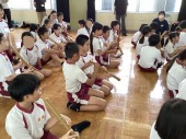 | 9月30日(火) 読み聞かせがありました 今朝もボランティアさんによる読み聞かせがありました。少し涼しくなってきた朝。お話の世界を楽しむことができました。いつもありがとうございます。 |