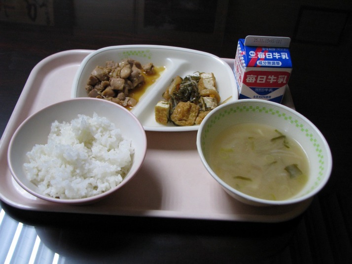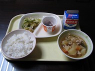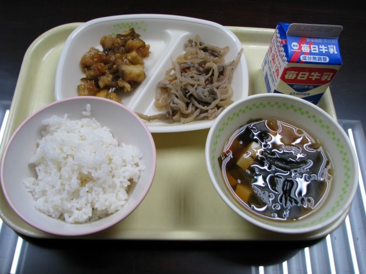 | 11月7日(金) 今日の給食。鶏肉のさっぱり煮 今日の給食の献立・・・ご飯、鶏肉のさっぱり煮、昆布の炒め物、じゃがいもの味噌汁、牛乳。エネルギー 630kcal タンパク質 27.6g |