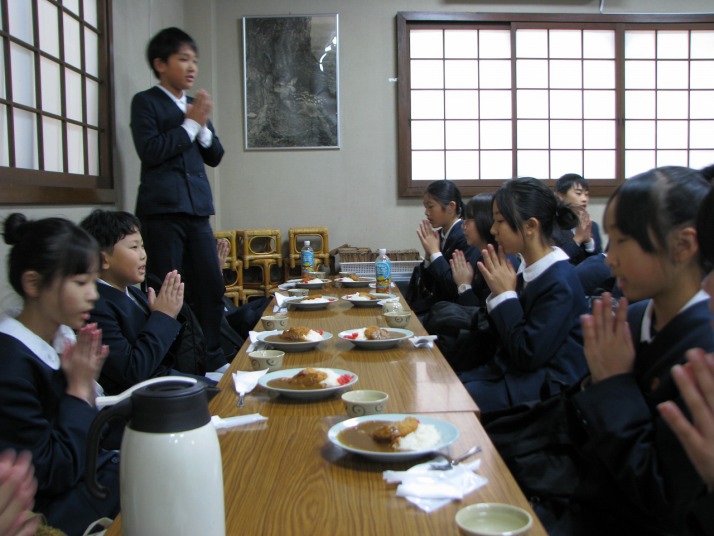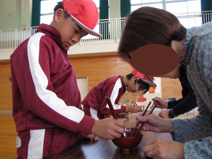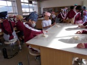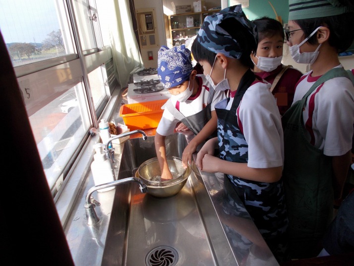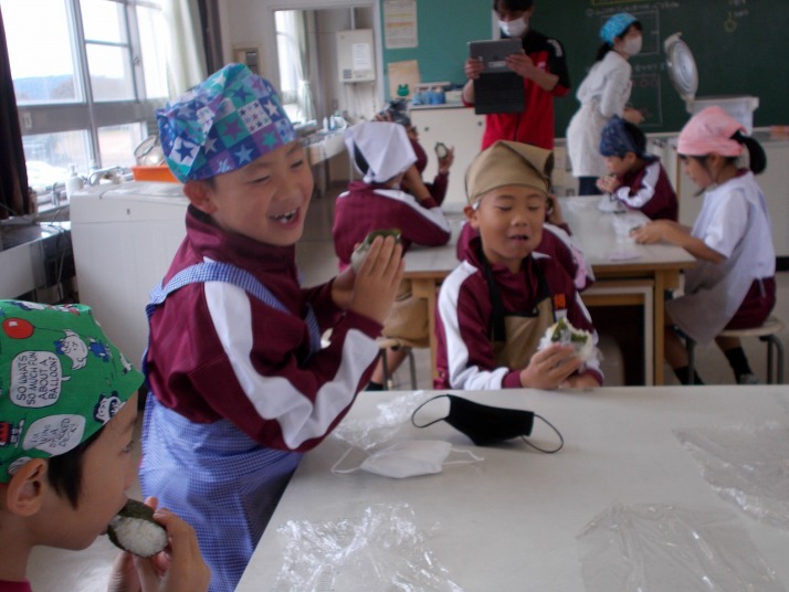 | 11月5日(水) おいしいおつくねづくり。 3年生が稲刈りをしたお米は、生産組合の方々が精米してくださり先日たくさんの新米を届けていただきました。今日は、そのいただいたお米を炊いておつくねづくりをしました。取れたて炊きたてのご飯はつやつやピカピカで、3年生もピカピカの笑顔でおつくねをにぎることができました。生産組合の皆さんありがとうございました。 |