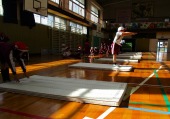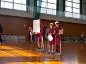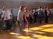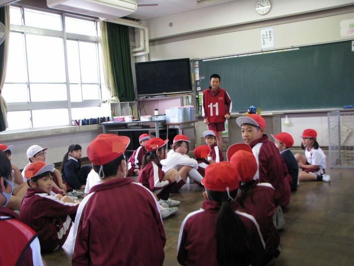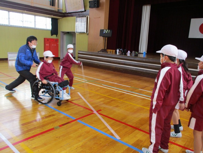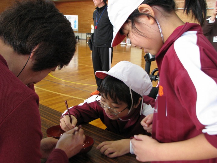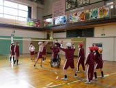 | 11月7日(金) ほのぼの運動会が行われました。 4年生がこれまで準備をしてきた東郷地区のほのぼの運動会が福井市東体育館で行われました。4年生が企画した種目もお年寄りの方々に楽しんでいただくことができ、楽しい運動会になりました。 |