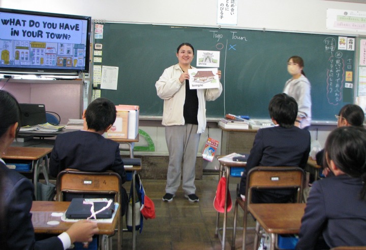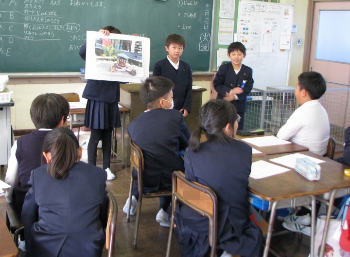 | 11月11日(火) 東郷の町には何がある? 4年生の外国語の学習では、東郷地区にある施設を英語で紹介することになりました。今日はいろいろな施設の名前を英語で確認しながら、東郷地区にあるかを考えていきました。 |