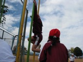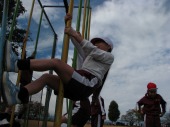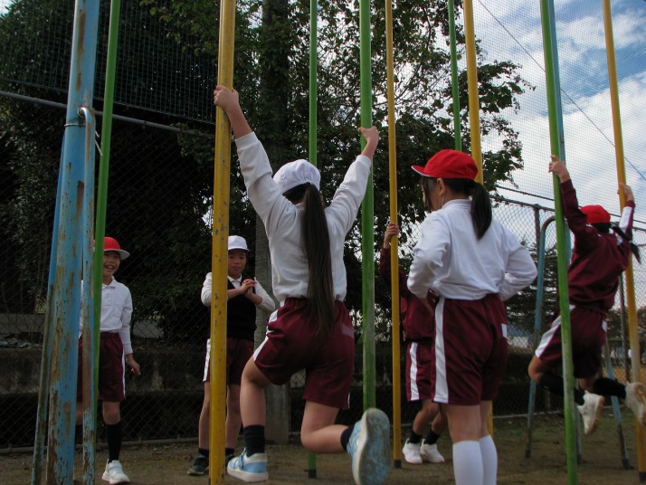 | 11月12日(水) 外遊びは楽しいね。 久しぶりのいいお天気。多くの東郷っ子が大休みや昼休みに校庭に出て遊びました。のぼり棒が使えることになったので、2年生を中心によく遊んでいました。 |