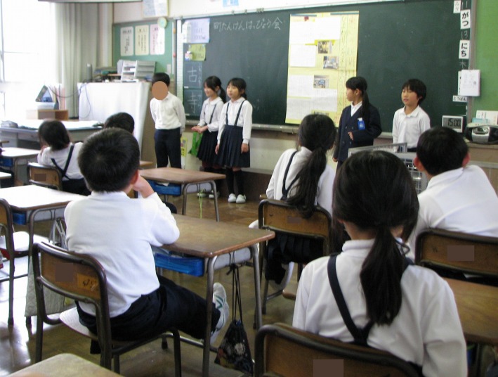 | 11月11日(火) CM鑑賞会、総合の発表練習をしました。 5年生のCMがしあがっていたので 今日は鑑賞会を行いました。コマわりやナレーションの工夫などが見られて、これから仕上げていくチームの参考になりそうでした。東郷の魅力を伝えるとても良いCMでした! 3年生は、総合的な学習の時間に調べてきた東郷地区について発表をしますが、今日は学級のみんなの前で5分間での発表の練習を行いました。練習が進んでいるところ、まだまだ必要なところいろいろありましたが、みんなからもらったアドバイスをもとに最終仕上げをしていきます。 |