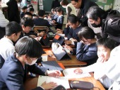 | 11月10日(月) CMづくり 仕上げに入ります。 5年生が制作している東郷地区の魅力を伝えるCMづくりはいよいよ佳境に入りました。最後にナレーションを入れるために別室で撮影したり、最終をチェックしたりグループごとに協力して活動していました。もうすぐ仕上がります。楽しみですね。 |