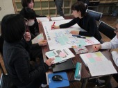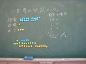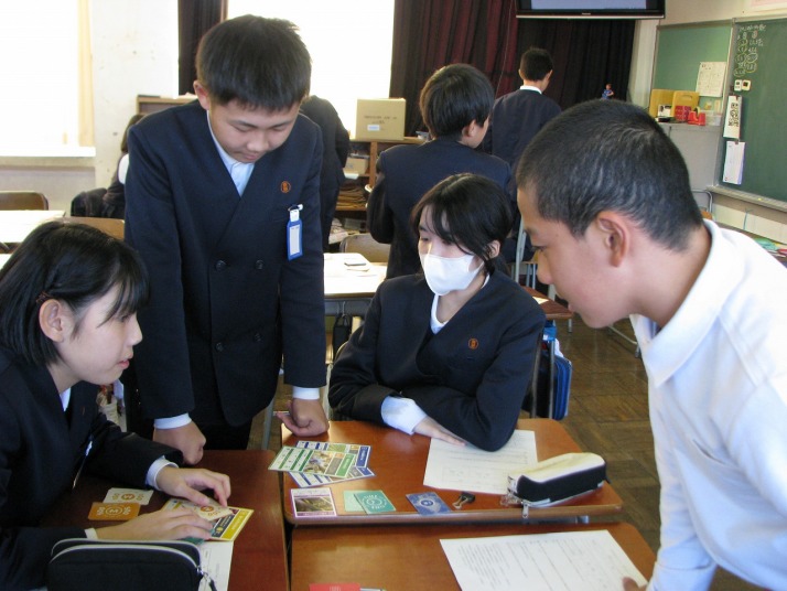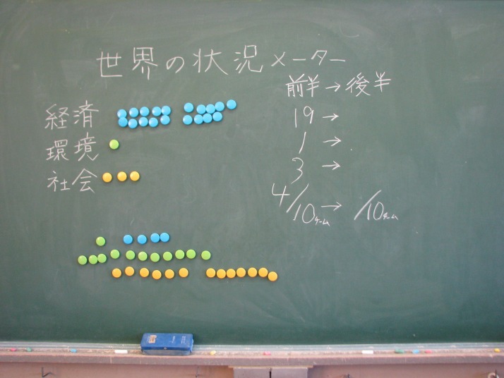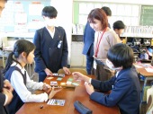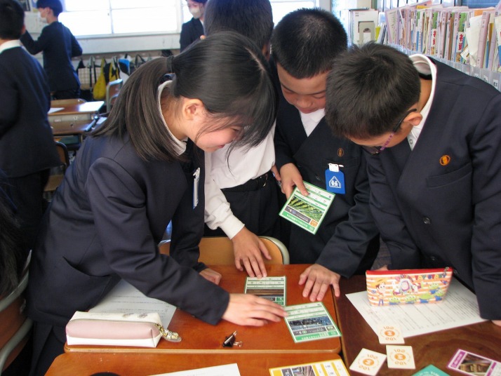 | 11月14日(金) SDGsについて考えました。 この授業は、本校6年生が英語科の学習において「生き物(絶滅危惧種等)を守っていくために自分たちにできることを考える学習」の事前学習として行いました。講師は、SDGs構築支援Sustaina(サスティナ)の中村綾菜氏、SDGsの17の目標達成までの道のりを体験できる「2030SDGsカードゲーム」用いて体験的に「なぜSDGsが私たちの世界に必要なのか」「それがあることによってどんな変化や可能性があるのか」について考えを深めさせていただきました。 これは、4,5人のグループが1つの国であるという設定のもと、1つのゴールを持ち、そのゴールに向かってお金カードや時間カードを他国チームと交渉して交換や譲渡をくり返し、様々なプロジェクトを立ち上げ実施していくというものです。実施していくその過程で世界の「経済」「社会」「環境」の状況メーターが変化していくということで、6年生は、それぞれのメーターが上昇していくためには、自国チームだけでなく参加者全体で協力していくことが大切だということに気づくことができました。その中で、「世界状況メーターが低くなっていて、それらが増えるように意識した。」「SDGsの目標達成のためには協力することが大切。」等の感想が聞かれました。 新聞社の取材もあり、記者の質問にも、「カードゲームをして、本当に自分の行動が世界を動かしているんだと思った。」などと答えていました。 |