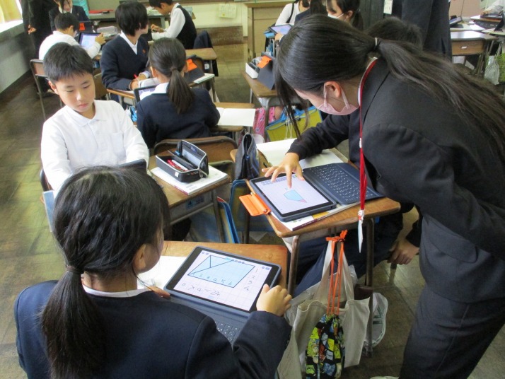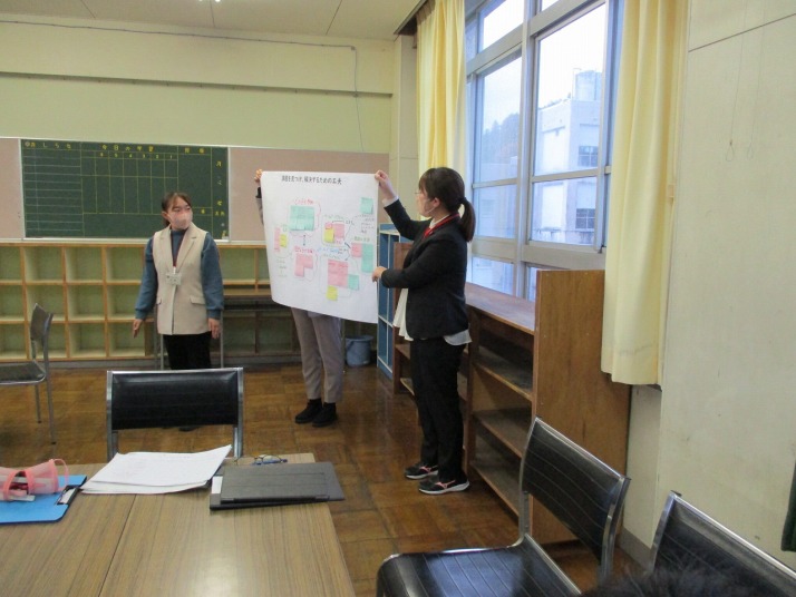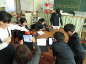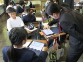 | 11月20日(木) 健康委員会は発表準備中です。 保健室に行くと、健康委員会がタブレットを開き頭を突き合わせ相談中でした。今度の集会で健康委員会が発表をするとのことで、プレゼン準備中でした。頑張ってくださいね。 |