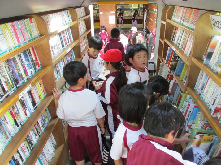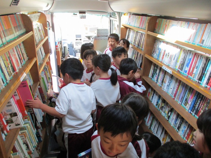 | 11月21日(金) フェニックス号が来校しました。 今日は毎月来校するフェニックス号の日。今日もたくさんの東郷っ子が本を借りていました。今月は読書月間。たくさん本を読んでくださいね。 |