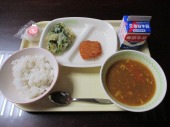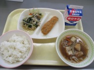 | 11月17日(月) 今日の給食。ちくわのカレーマヨネーズ焼き 今日の給食の献立・・・ご飯、ちくわのカレーマヨネーズ焼き、三色ごま和え、けんちん汁、牛乳。エネルギー 551kcal タンパク質 22.3g |